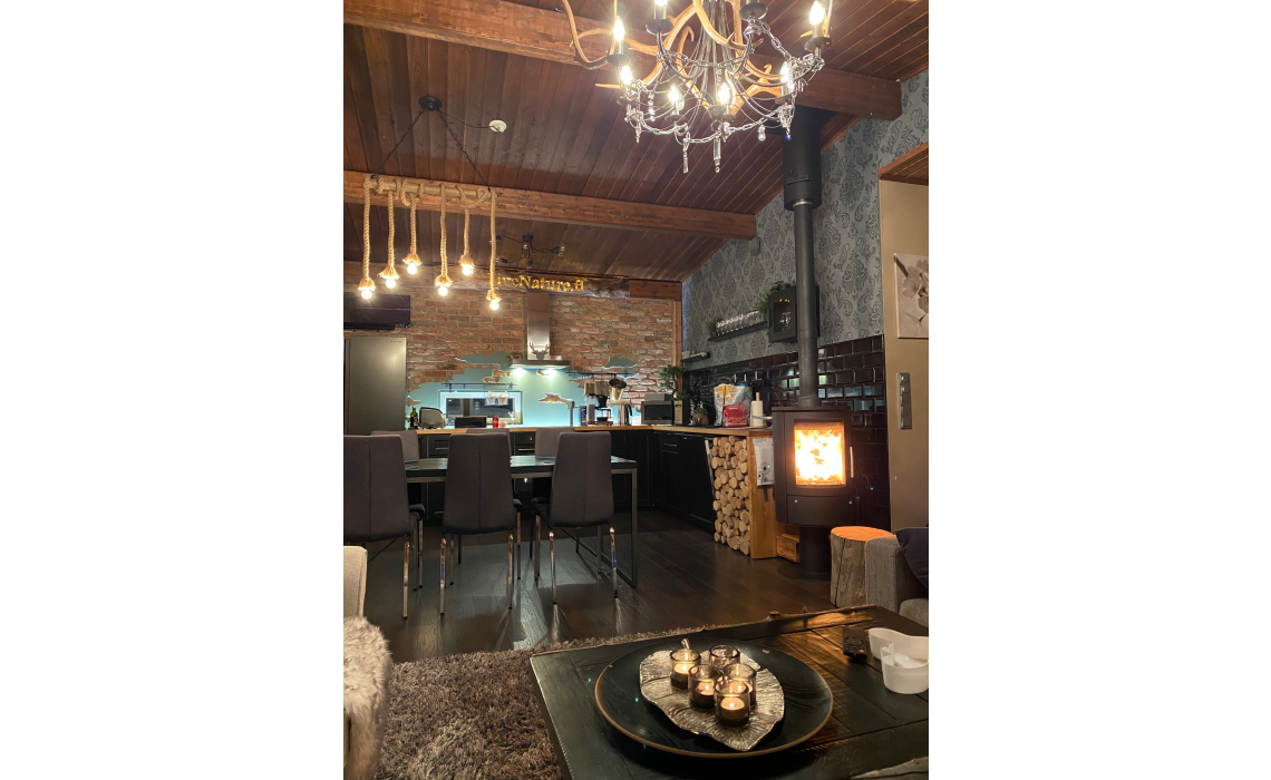 - Upea valaistus ja yli satavuotiasta hirrestä tehdyt seinät