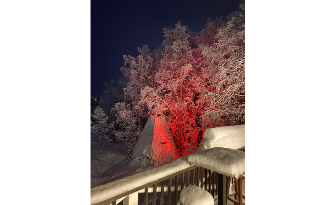 Helikopteri noutaa tarvittaessa sinut elämykselliselle tunturikierrokselle ja kuljettaa tunturinhuipulle ravintolaan kuumalle kaakaolle.