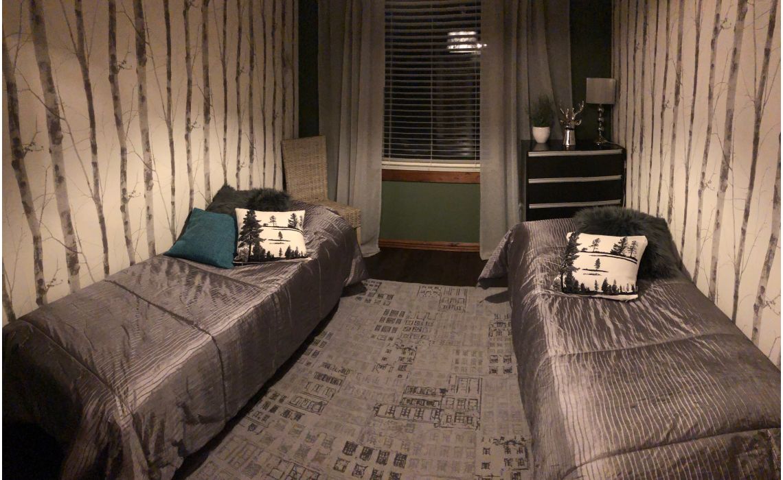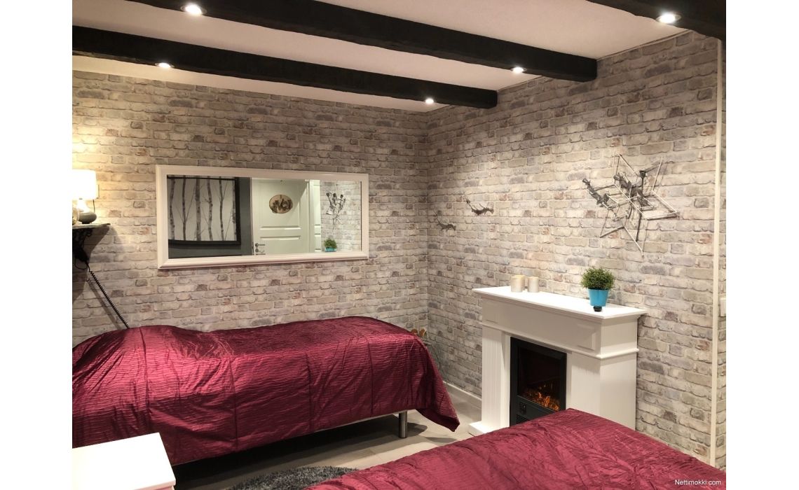 - Makuuhuone 2 (yläkerta): 2 kpl 80cm erillisvuodetta